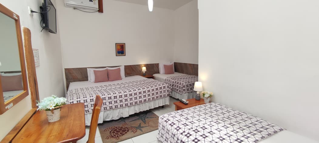 Esta es nuestra opción más espaciosa, diseñada para el máximo confort y privacidad. Disfrute de una suntuosa Cama King size que garantiza un sueño inigualable. La suite se extiende con un elegante área de sofá para la lectura o el trabajo, y un rincón de relajación con su propia hamaca para desconectar por completo. Incluye todas las comodidades de nuestro hotel (A/C, Starlink Wifi, baño privado, agua caliente/fría).